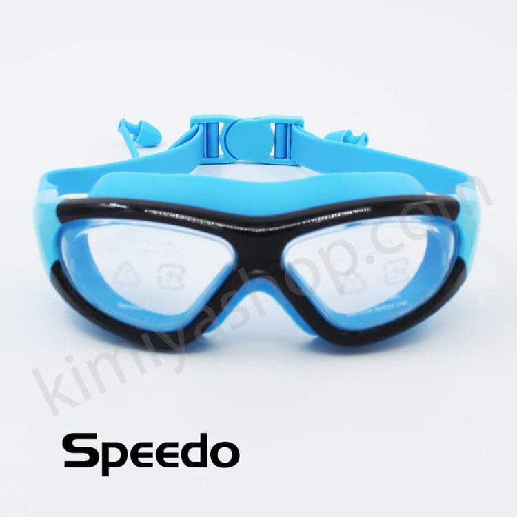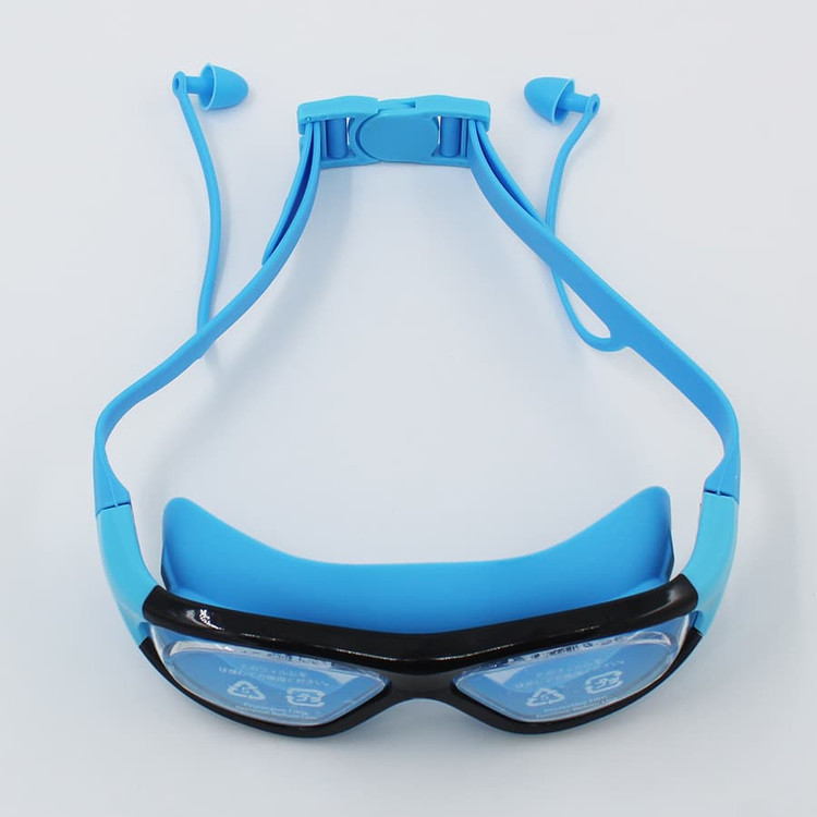 عینک شنا YONGBO آبی با خط مشکی | ضد بخار و مقاوم در برابر کلر
