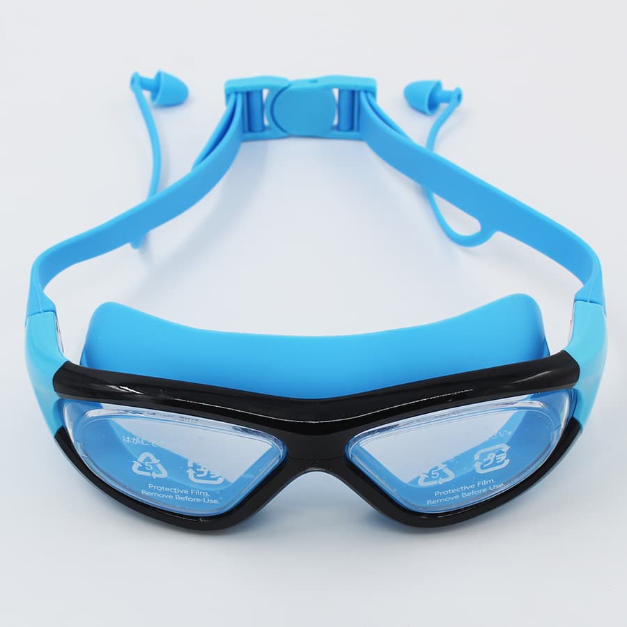 عینک شنا YONGBO آبی با خط مشکی | ضد بخار و مقاوم در برابر کلر