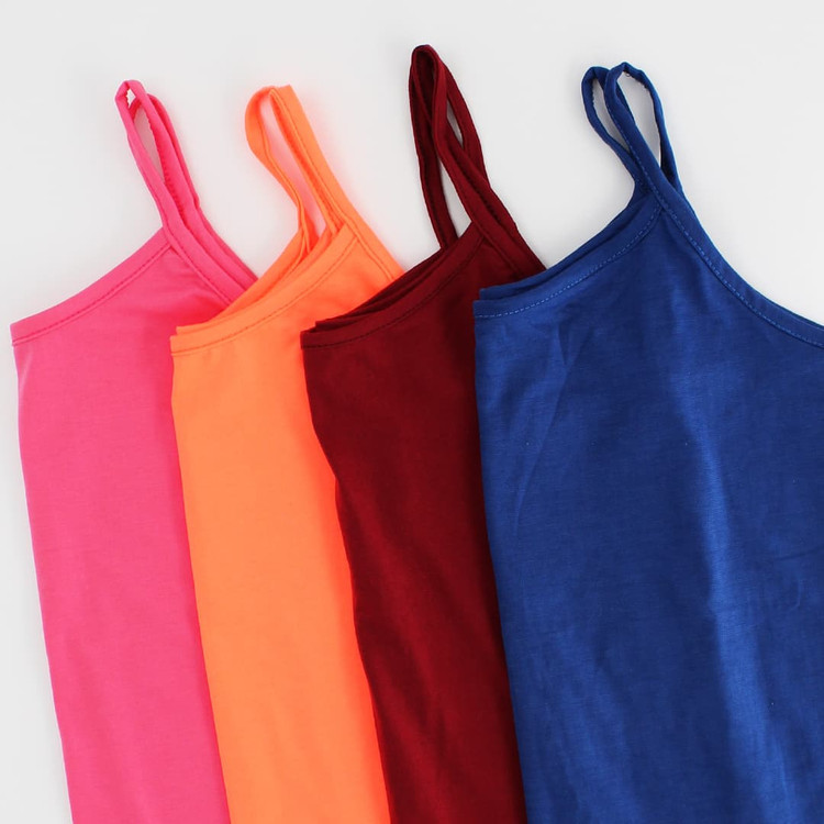 همان گونه که در (تصویر) می بینید یقه ی این تاپ ها خیلی باز یا بلند نیست. این ویژگی به تاپ کمک می کند تا سینه ها و خط وسط سینه ها را به خوبی بپوشاند. یکی از ویژگی های خوب دیگر این تاپ های بنددار اینست که، رنگ آن ها ثابت است. رنگ آن ها با شستشو تغییر رنگ نمی دهد و تُل نمی اندازد.
