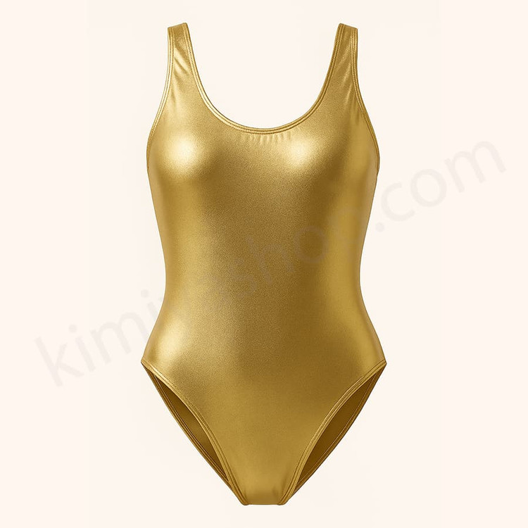 بادی (مایو) زنانه دیسکویی طلایی پشت بسته – درخششی خیرهکننده، ظاهری حرفهای